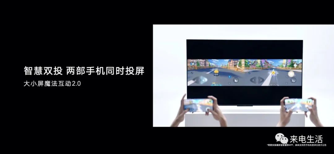 荣耀智慧屏X1系列支持智慧双投功能,两个手机通过扫码实现双路镜像投屏。也就是说,通过手机双路镜像投屏,两个人可以通过一块大屏,分别投屏自己的手机内容,双路投屏轻松带来双倍快乐。