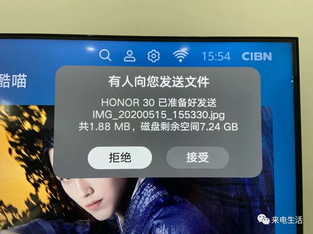 既然叫做“智慧屏”,那么在下面智能体验方面,我们有必要跟大家多谈一些。荣耀智慧屏X1系列配备大小屏魔法互动2.0,支持HONOR Magic-link魔法闪投,遥控器内置NFC,只需手机靠近遥控器NFC区域即可轻松投屏。个人比较喜欢的一点是,开启这个功能无需下载额外APP,无须同一Wi-Fi环境,无须选择配对,使用起来十分便捷。